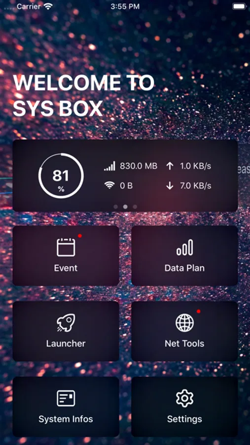 SYS BOX offers customizable features that not only allow you to change app's icon, but also allow you to change the background of home page and add cool starry sky effects.