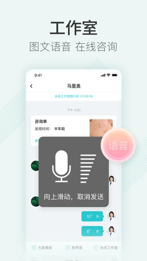 【便捷沟通】图文、语音输入,方便快捷,解答患者咨询问题,获得收入;