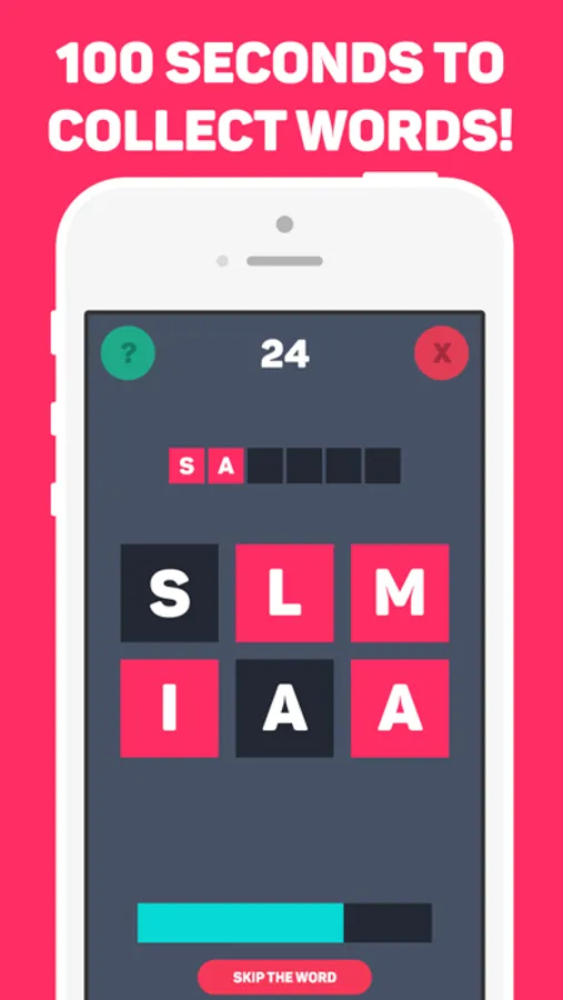 You have 100 seconds. Collect words. Tap on the letter and it will automatically move to a empty cell. To remove letter, tap on it again.