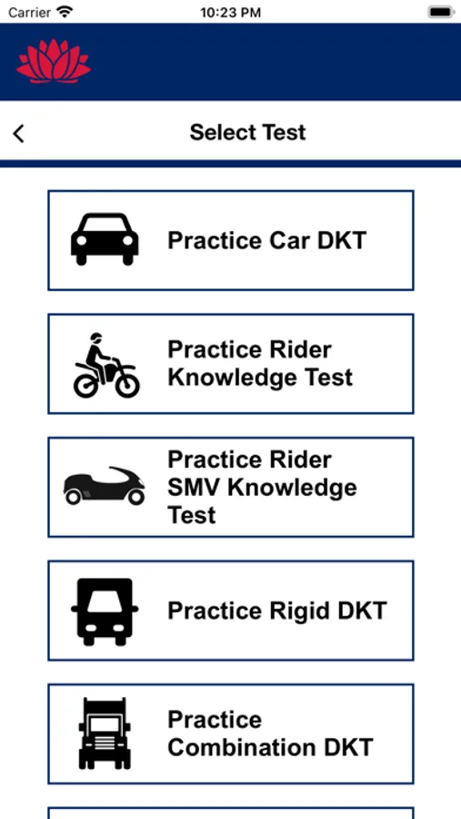 The practice tests look and operate like the real tests. You will be advised at the end if you passed or failed. The driver and rider tests have 45 questions and the boating tests have 50 questions.