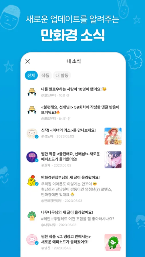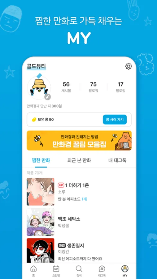 최애 만화 자랑은 언제나 환영! 다른 독자들을 팔로우하고, 내가 그린 만화도 자랑해 보세요.