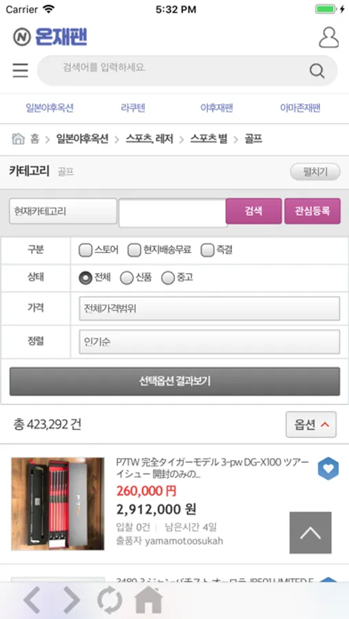 - 일본야후옥션을 통한 국내에서 구하기 어렵거나 비싼제품을