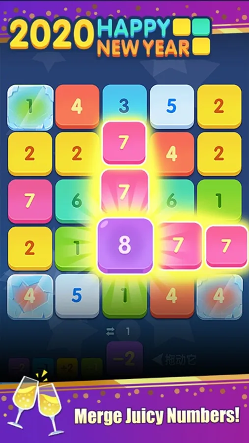 At this time, we continue to do a basic game play like Merge plus: Drag handcard to the block on the chessboard, then, It will be merged into the Sum of the two numbers. At least 3 same adjacent numbers will complete one merge.