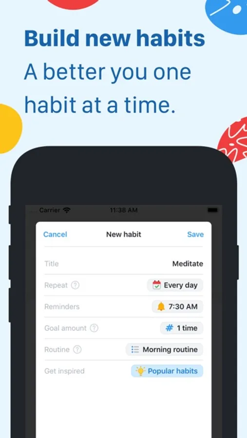Track habits, build routines and accomplish goals. Habitual is a habit tracker that helps you form great habits, reach your goals and get your life in balance.
