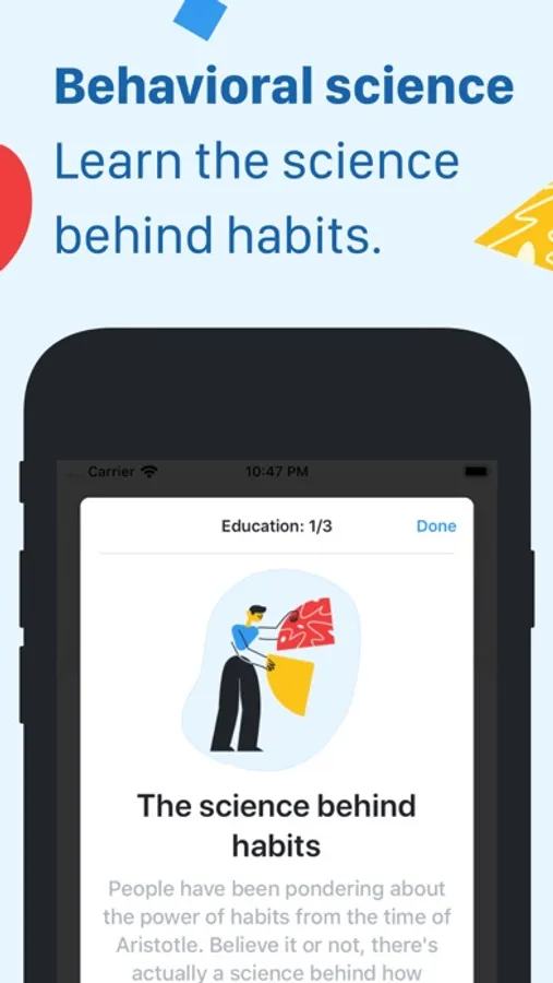 • Behavioral science: Learn the science behind it all. Learn little by little with the daily tips or jump straight into the education program.
