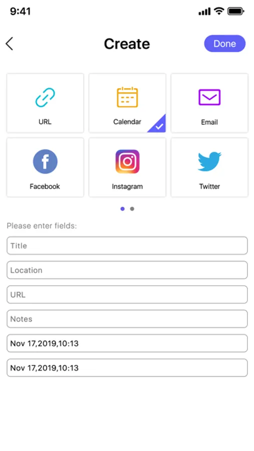 * Support generating QR Code for Facebook, Instagram, Twitter, Spotify, Youtube, Whatsapp, Dropbox and so on.