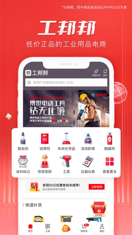 工邦邦-低价正品的工业用品电商。主营42条产线,1700万+SKU,覆盖胶黏剂、润滑油、五金工具、低压电气、劳保安防、办公清洁等行业产品,全国32个总仓,96+服务中心,一站购齐,送货更快,找工业用品、省钱就上工邦邦!