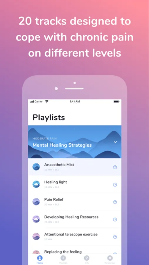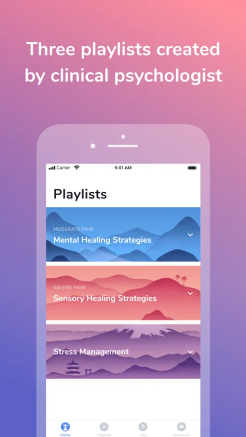 The application comprises 3 playlists for controlling pain and associated stress that can maintain pain.
