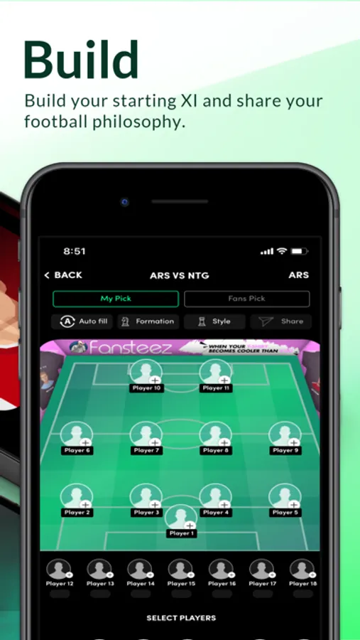 Pick up your best team based on your own knowledge or use the opinion of the gaffers around you. Create your best lineup before every match.