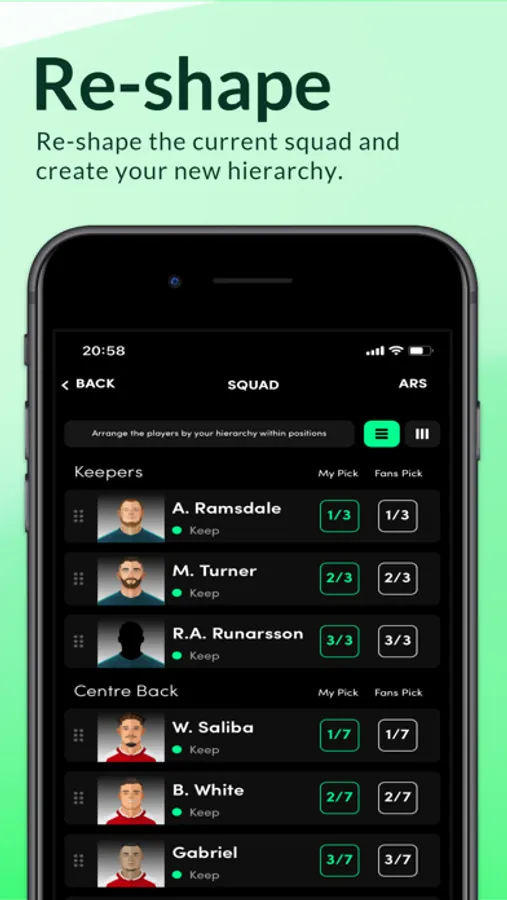 Mastermind the players position and status over the squad hierarchy in a real time mode, and check whether you see it differently from the other fans.
