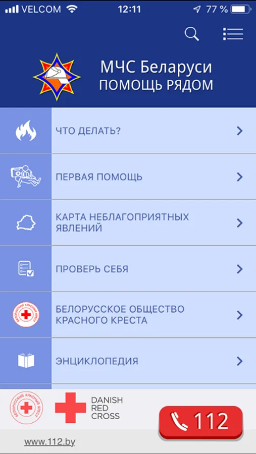 Приложение поможет сориентироваться и мгновенно найти информацию о действиях в случае чрезвычайной ситуации. Оно также оповещает о неблагоприятных и опасных природных явлениях через встроенную интерактивную карту Беларуси. Кроме оповещения о грозе, сильном ветре, ливне, снеге и т.д. пользователи смогут сразу увидеть рекомендации спасателей о действиях при таких обстоятельствах. Содержит функцию звонка в МЧС «112» с возможностью пользовательских настроек. Так, можно одновременно отправить смс или настроить тревожную кнопку на заданный номер – например, врачу или родным. Это позволит связаться в экстренных случаях с нужным человеком, что особенно важно для людей с различными заболеваниями. В последней версии приложения реализованы поиск, есть возможность проверить полученные знания в тестах, прочитать статьи в разделе «Энциклопедия».