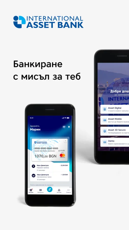Asset Mobile е нашият начин да спестим Вашите време и средства, предоставяйки Ви сигурни, изгодни, бързи и интуитивни достъп и управление на основни банкови продукти и услуги.
