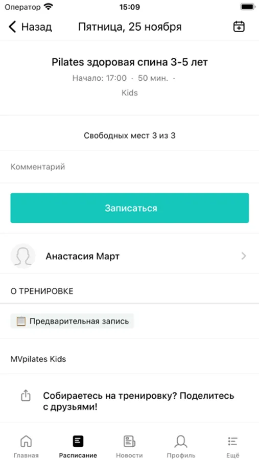 С помощью приложения вы можете записываться на занятия, оперативно получать информацию об изменениях в расписании, следить за новостями и актуальными предложениями