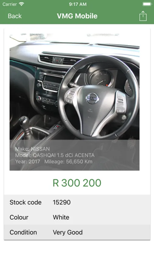 The VMG Mobile app allows you to register your device to your VMG DMS account and then scan a license disk or license document to bring the vehicle into stock.