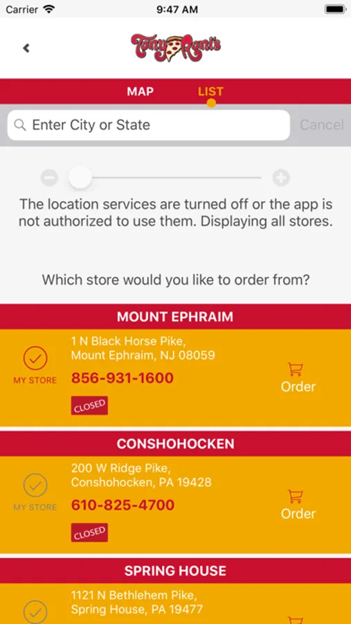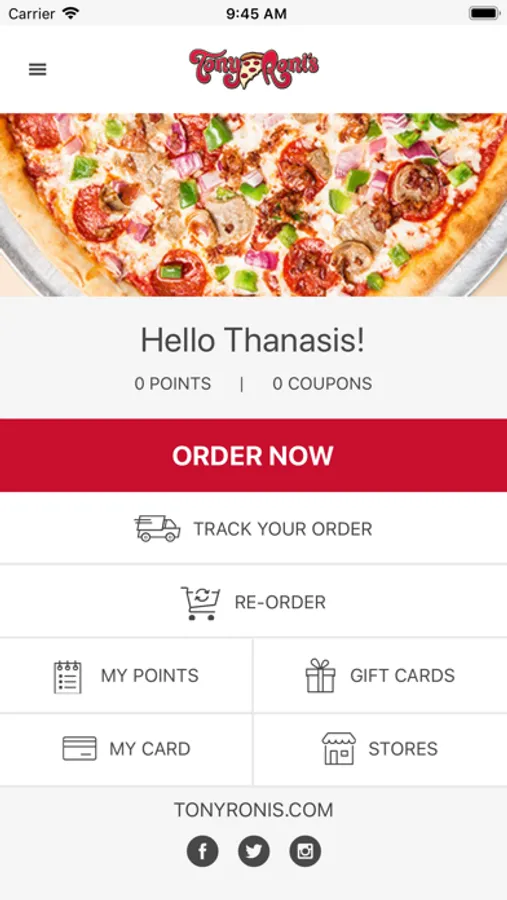 The official mobile app for Tony Roni's Pizza is now here. Ordering from Tony Roni's Pizza is as easy as eating a Pizza! With this app you can track your loyalty points, view your coupons, pay with your gift card and order your favorite food online.
