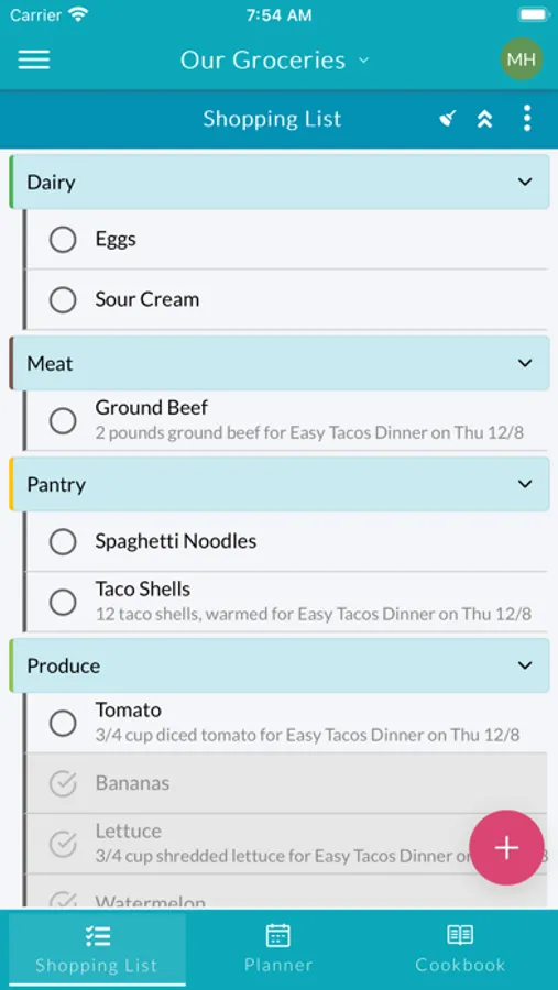 Share your shopping list, organize your recipes, and easily accomplish your meal planning.