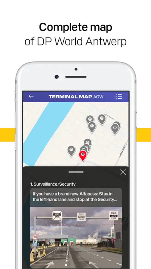 Route 1700 also has a complete map of DP World Antwerp with details on the various points of interest, details on our security guidelines and a help section to help you with your visit to our terminal.