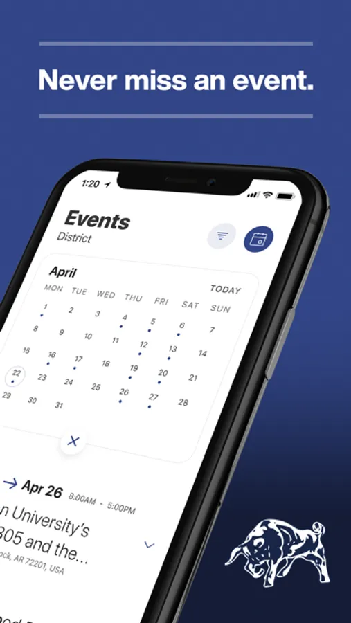 The event section shows a list of events throughout the district. Users can add an event to your calendar to share the event with friends and family with one tap.