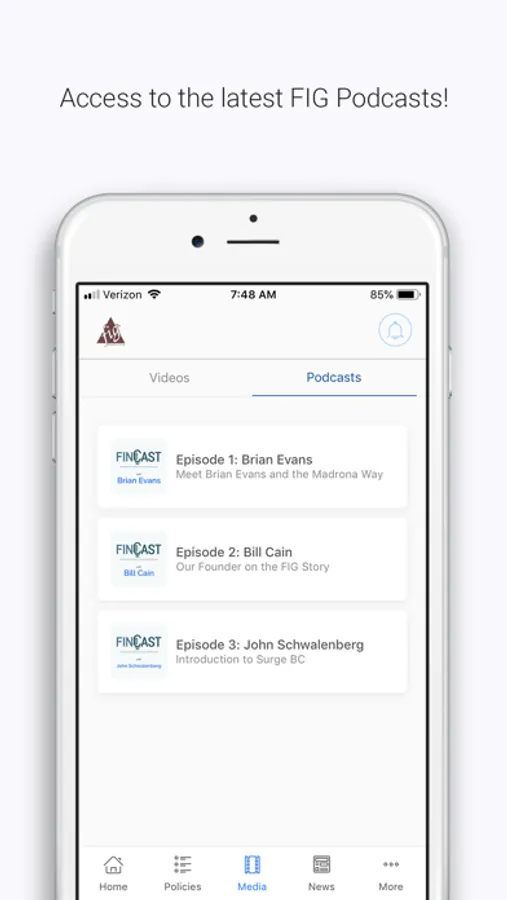 From tailored industry content to a collection of podcasts and videos, FIG Marketing App brings this entire ecosystem to your fingertips. With personalized policy reporting and exclusive industry media, you can navigate the complexities of insurance with ease and in real-time.