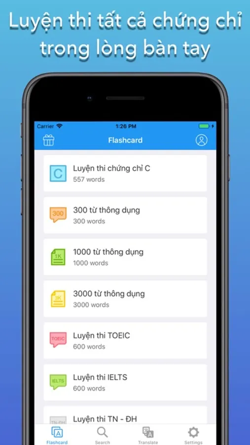 • Học từ vựng phổ biến thi TOEIC, IELTS, TOEFL.