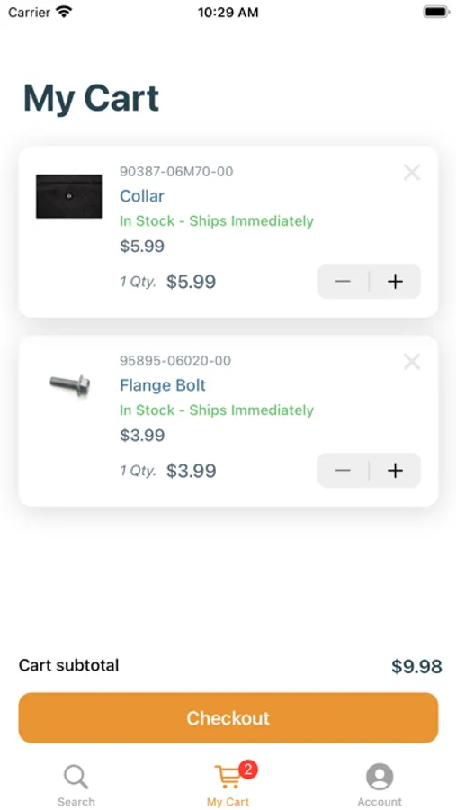 Look up the exact part you need, check inventory and purchase, all from your phone.