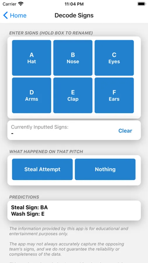 [4.] After a few times, the app will begin to predict what the team's steal sign is. Keep going, and the app could also pick up wash signs as well!