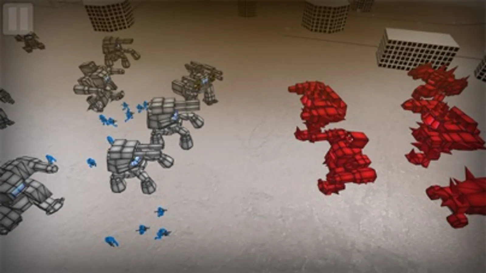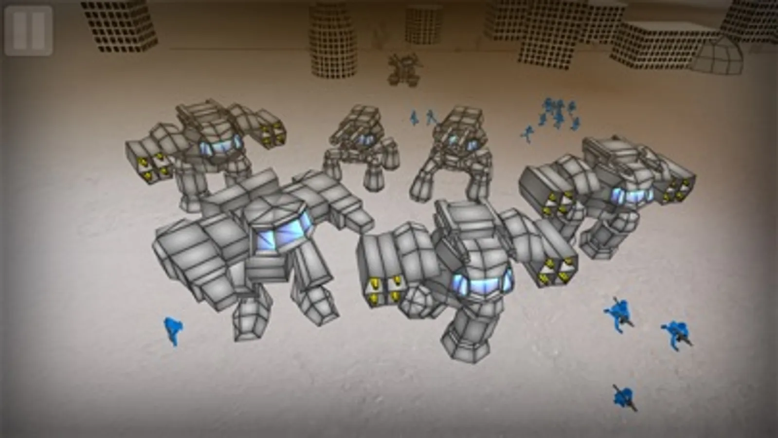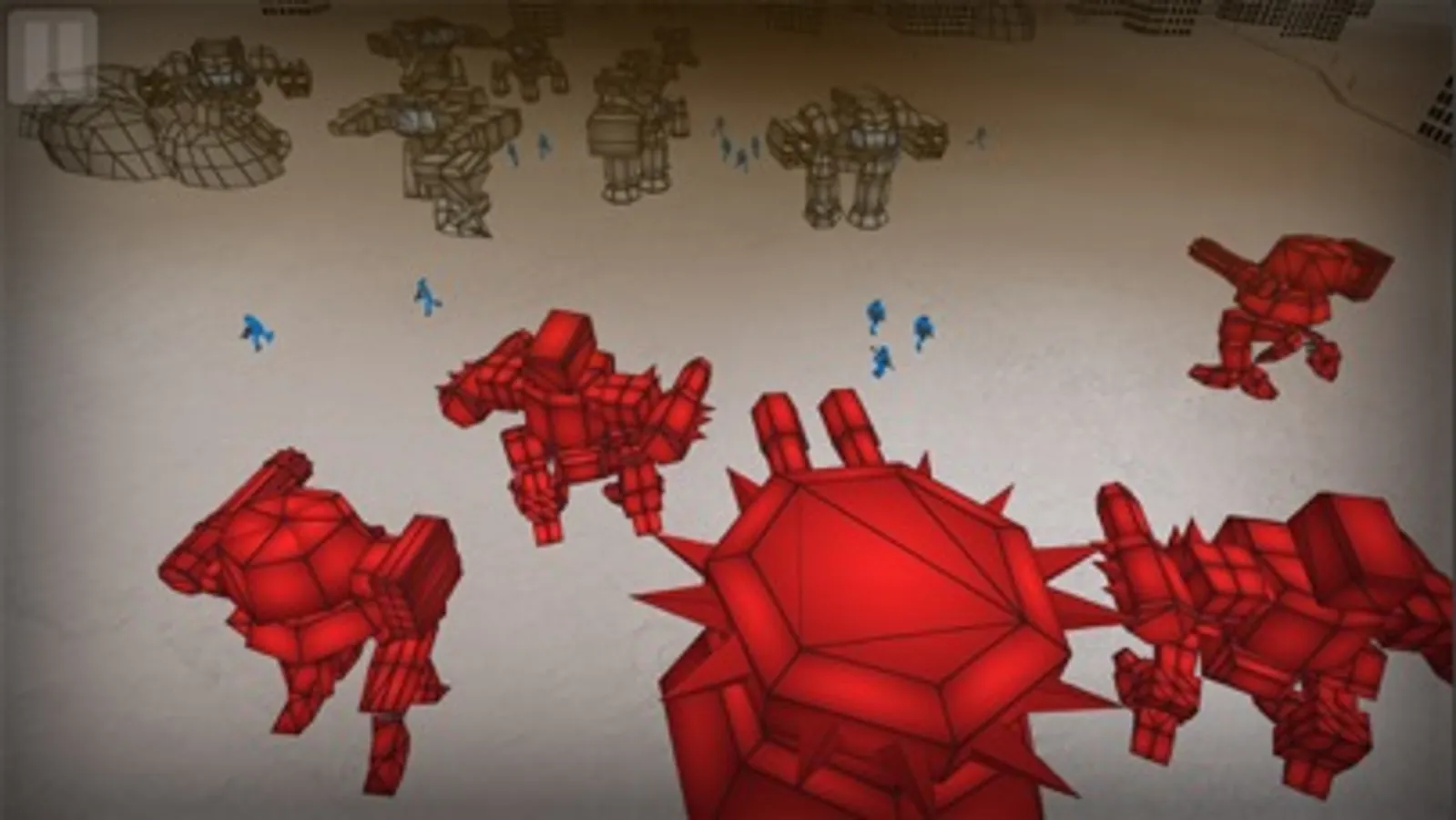 The stickmen have a new war: the red mech warriors are attacking their futuristic city!