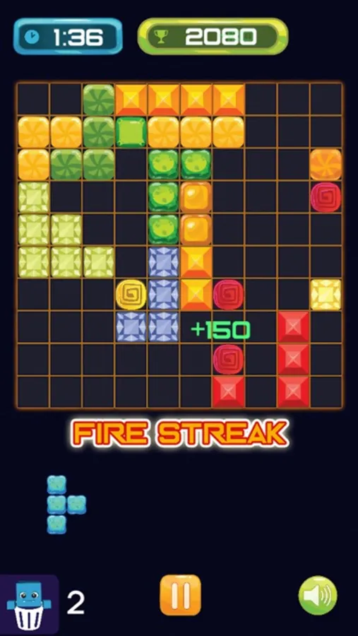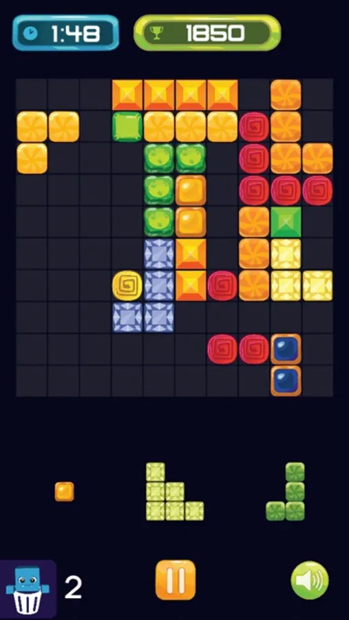 Block Block is a board puzzle game. Where you decide where to drop your pieces. Plan well and place the random blocks to build vertical or horizontal lines of blocks without gaps. When a line is completed, it gets destroyed and you score. Create combinations of completed lines to score higher. Consecutive combinations get you on fire. Race against the clock to get your board cleared and keep your cool as things heat up. Garbage pal will throw you a life line to bail you out when you get stuck. Be careful as this fun game will become addicting.