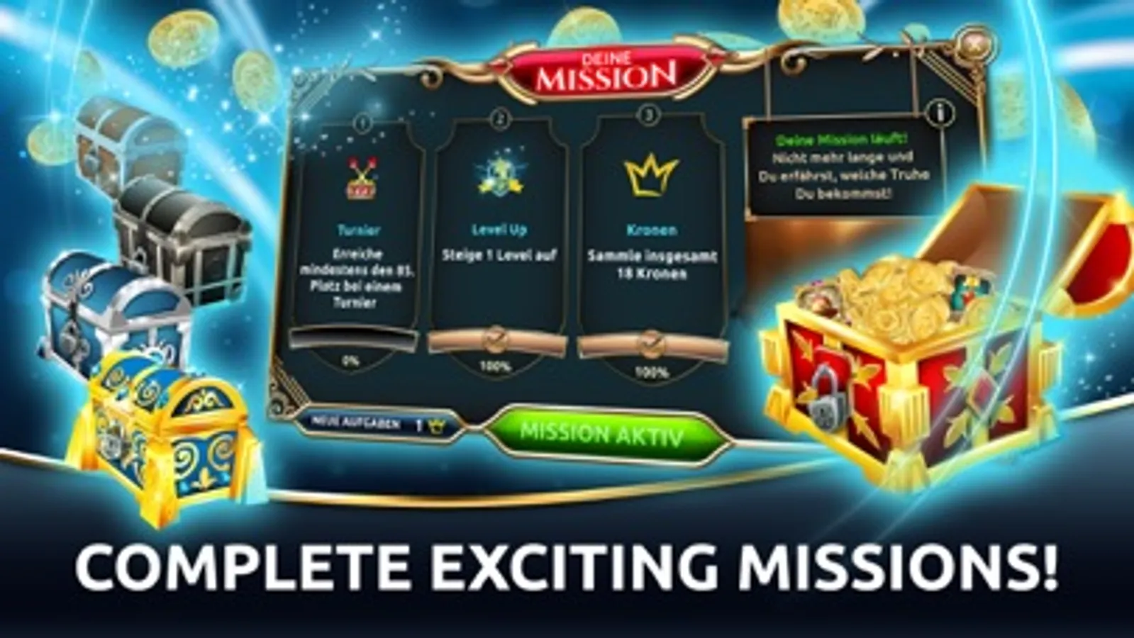We set new standards for Your Majesty with excitement and the highest fun factor, whether at home or on the road. Unique and only with us: missions, team play, tournaments, the King’s Path, card collecting and a league system for more fun than ever before.