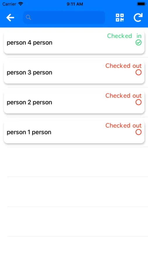 Participants, booth purchases, and volunteers can be scanned as present with a QR scanner and their confirmation QR code. They can also be manually marked as checked-in or checked-out.