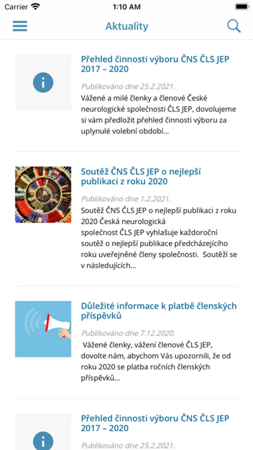 Aplikace Česká neurologická společnost obsahuje důležité informace o České společnosti. V aplikaci naleznete všechny potřebné informace o společnosti, výbor a sekce naší společnosti, ale také pomocné příručky pro praxi, doporučené postupy a další užitečný obsah.