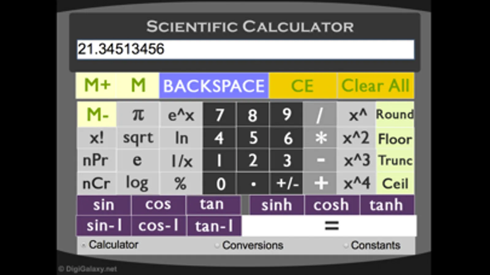 High-functioning calculator that can perform algebraic, trigonometric, logarithms, roots, powers, reciprocals, and factorials in addition to general mathematical tasks.