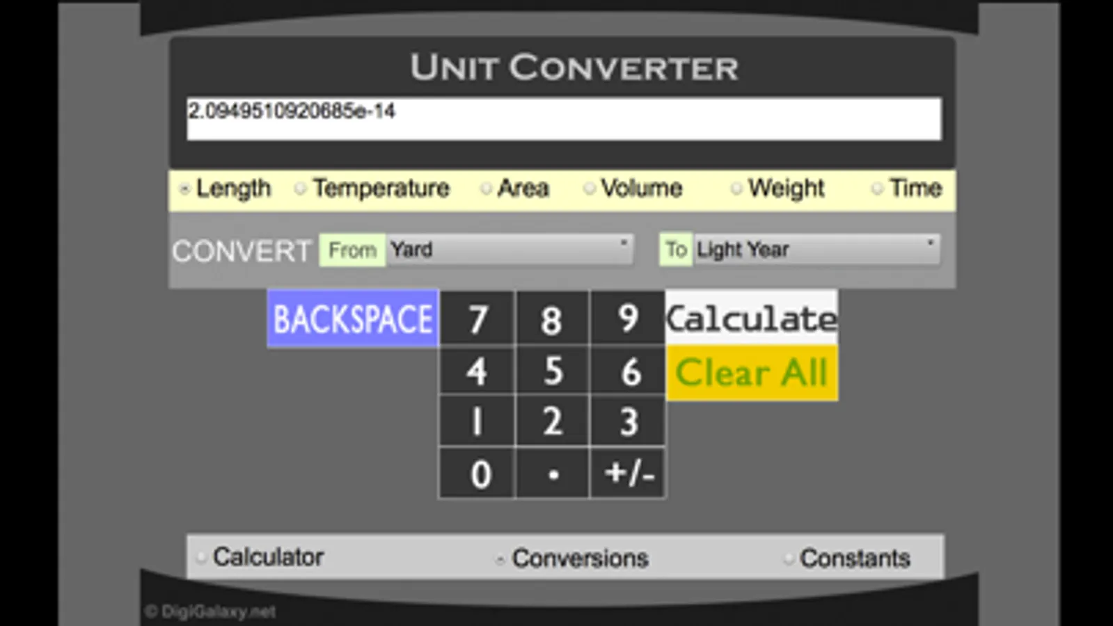 ** Length (Meter, Kilometer, Centimeter, Millimeter, Micrometer, Nanometer, Mile, Yard, Foot, Inch, Light Year)