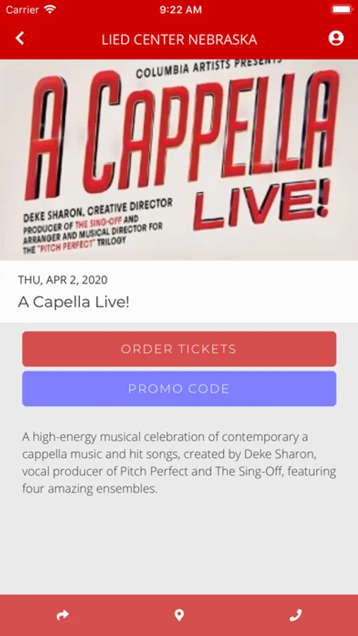 View and scan your Lied Center tickets on your mobile device. You can also share tickets directly from the app with other members of your party, if you aren’t arriving together.