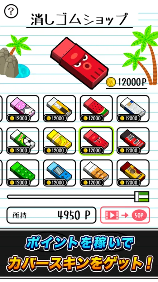 ポイントをためて、100種類以上ある消しゴムを集めよう!