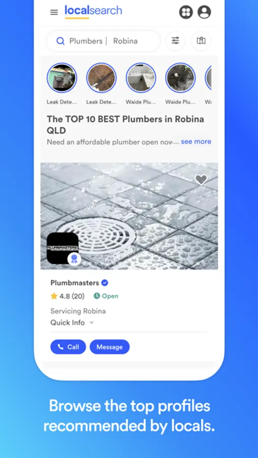 Call a plumber open now. Find a 5-star hairdresser. Read restaurant reviews. The new Localsearch app helps you find what’s near you and open now with only your phone and an internet connection.