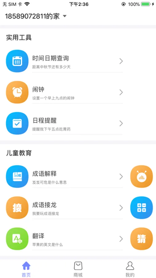 1. 绑定机器人:快速的帮您创建家庭、添加机器人,通过手机进行机器人绑定;