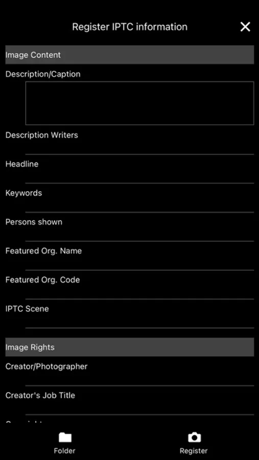 - For images to be transferred to FTP, SFTP, or FTPS servers, voice memos can be added and IPTC* metadata can be edited in the application.