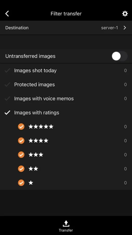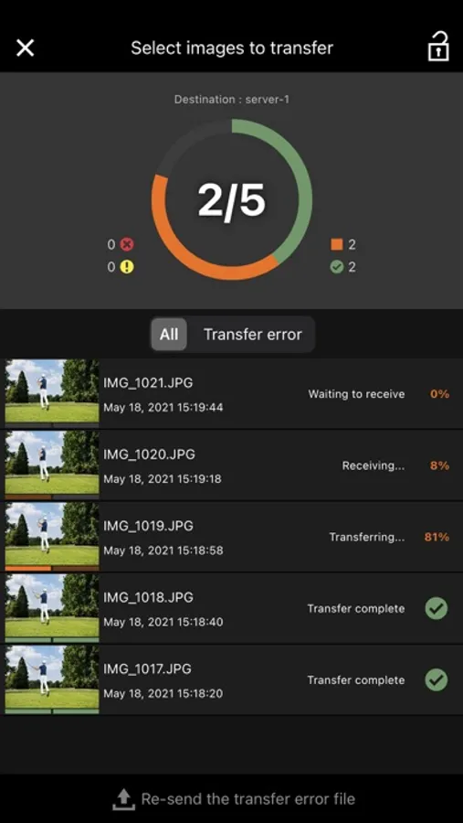 - "Auto transfer" for capturing and transferring images captured by the camera as they are, "Filter transfer" for transferring images based on set conditions, and "Select images to transfer" for transferring images by selecting specific images from the images in the camera are possible.