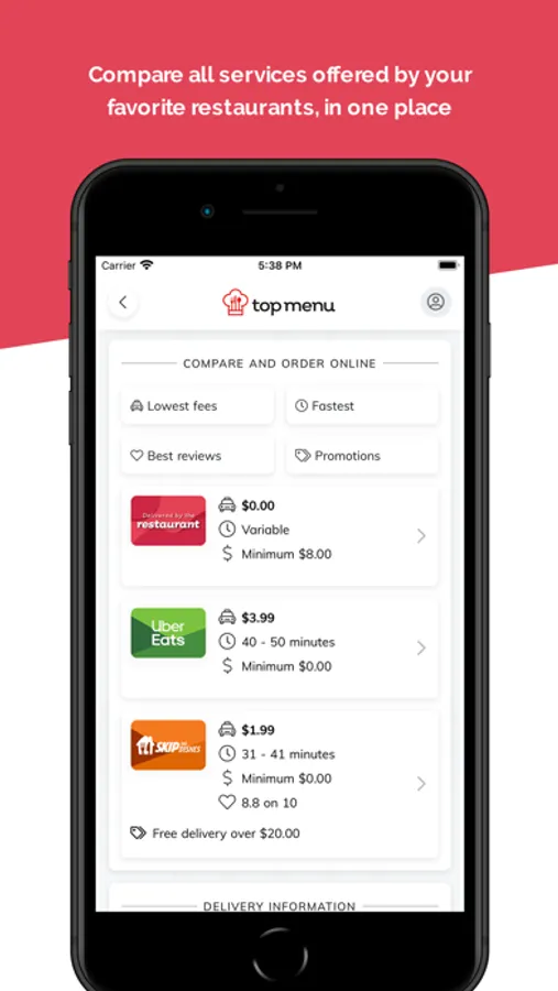 2. Compare all services available for the selected restaurant and spot the best deal for you;