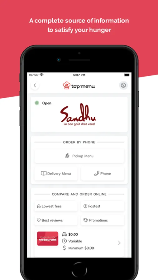 Craving a great meal? The Top Menu mobile app gives you an overview of restaurants that offer delivery and pickup in your area. Explore all of your options, in one place, simultaneously.