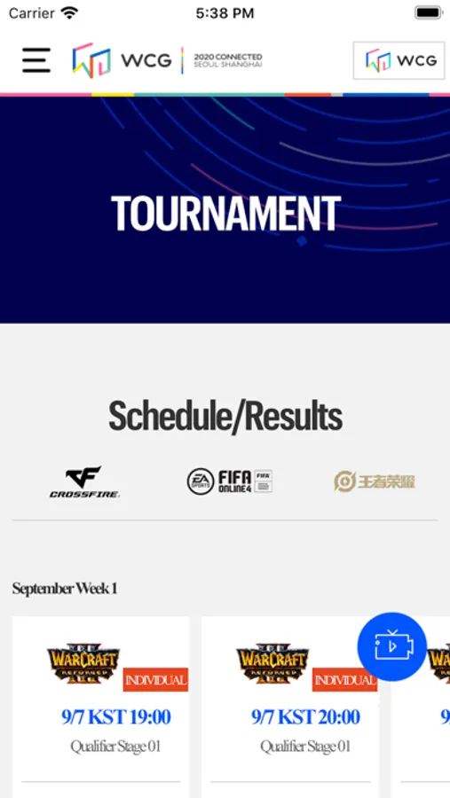 더 나은 세상을 위한 글로벌 이스포츠 축제 WCG는 2000년 출범한 이래 세계 최대의 이스포츠 대회로 인정받고 있습니다. 즐거움을 통해 더 나은 세상을 만들고자 하는 비전으로 나아가기 위해 WCG는 모두가 즐길 수 있는 다양하고 새로운 컨텐츠로 가득찬 WCG를 개최합니다. WCG는 e스포츠 대회 그 이상을 추구하며 전 세계 모든 사람들이 함께 어울리는 축제를 만들기 위해 만들어진 App입니다.