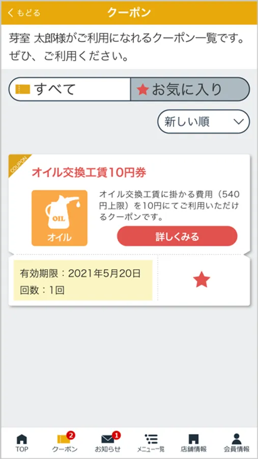 オイル交換などお車のメンテナンスもクーポンで更にお得にご利用頂けます。