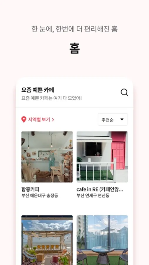 * 추천 : 고객의 성향에 적합한 예쁜카페를 추천해주는 기능입니다.