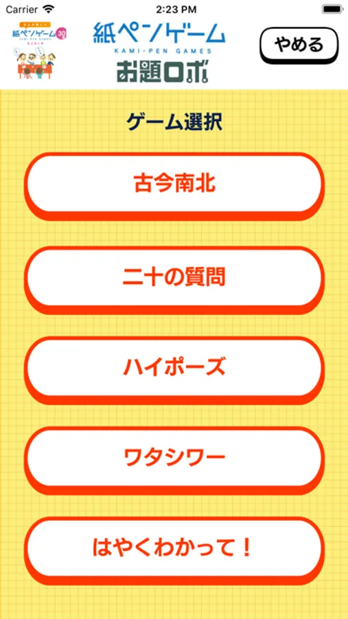 「紙ペンゲーム:お題ロボ」で遊べるゲーム