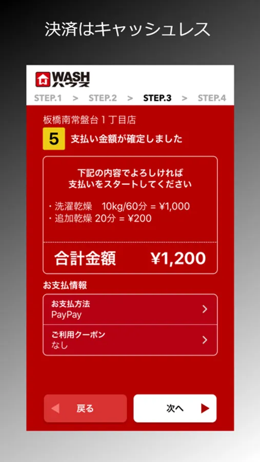 (2)決済もWASHハウスアプリから可能
