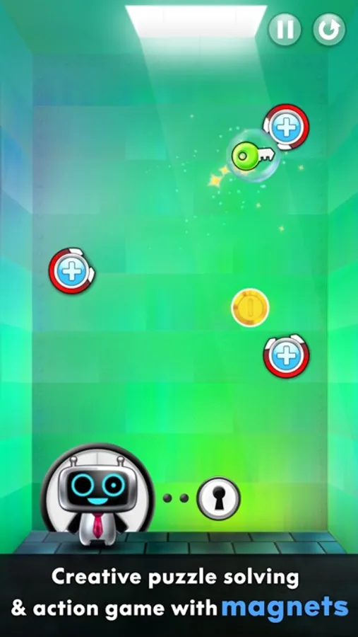 Help BBot escape the evil clutches of his crazy EX. Solve their mind-bending puzzles to help BBot escape by pulling the floating key with magnets towards the keyhole. Collect all 3 coins or the rare green coins to unlock the final door so they can break-up forever. Think you can out smart the ex in this uniquely addictive, physics based puzzle adventure?