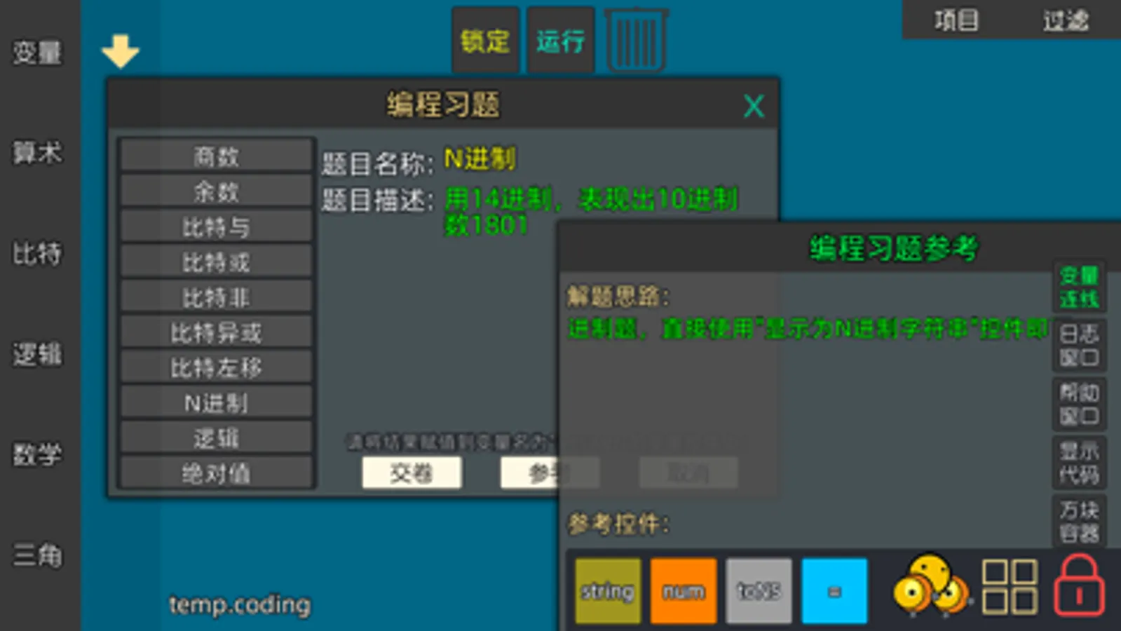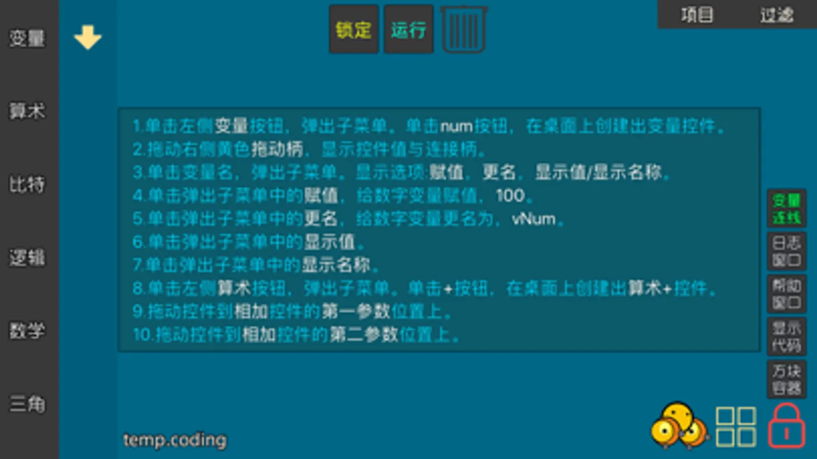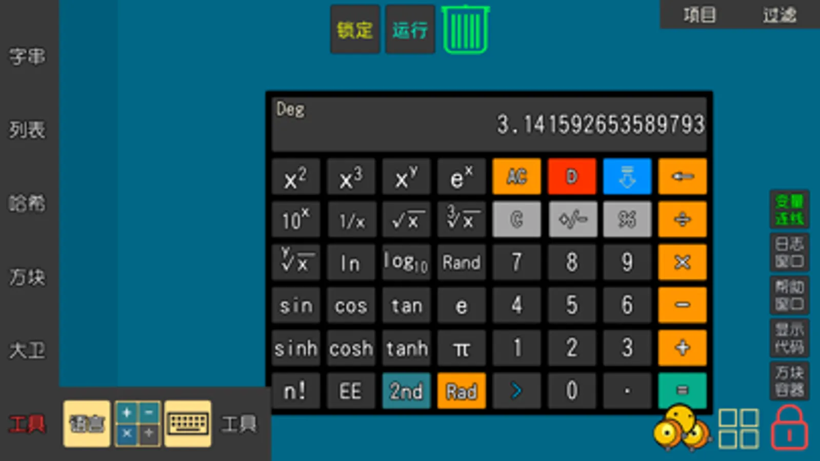 底层语言使用了最受欢迎,最广泛使用的Javascript,而且进行了大量的扩展。添加了比如"列表解析"等非常实用的特性。 使用拖拽控件的方式编程,不用再担心编程环境的搭建,所见即所得,实时查看代码与运行结果,极大的避免了语法错误,大大减少初学者的挫折感。内置了不少学习工具,多功能计算器,拼音,五笔,笔画等输入法(可以用来学习五笔输入,拼音输入),方块控件(这个控件甚至可以用来做游戏或者动画展示)。编程控件中英文可以实时切换,函数代码块也可以实时生成控件。内置了几十个入门编程习题,由浅入深,让编程学习不再枯燥,无方向。也可以自己找编程题目来练手,比如每年高考数学信息题。编程,最重要的是思想,无限可能。机械智能控制,大数据处理,自动驾驶,人工智能等等的发展,都是编程的发展,思想的进步。学习编程,拥抱未来,赢在起跑线。