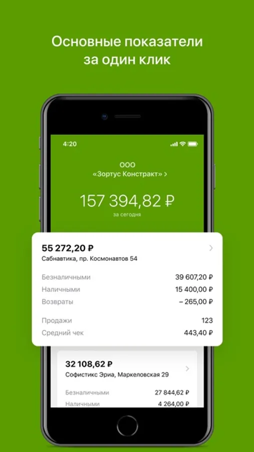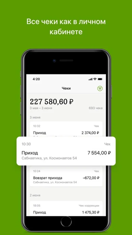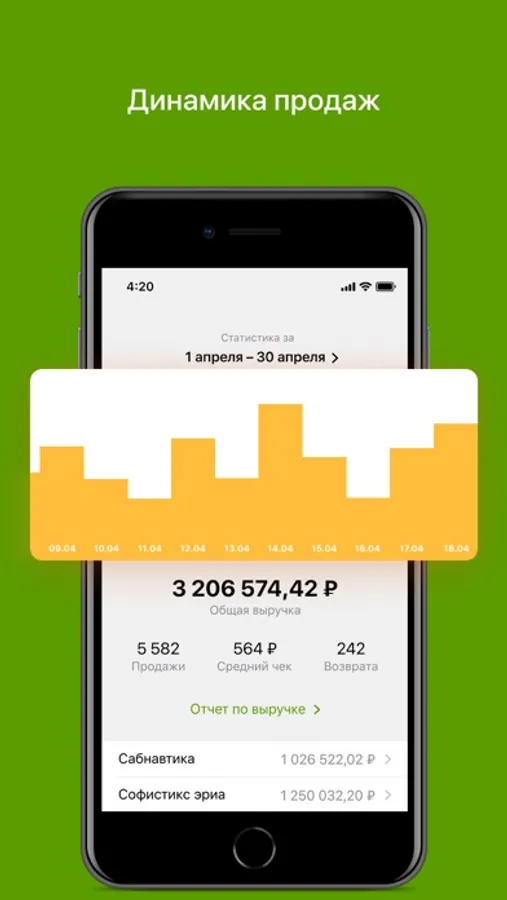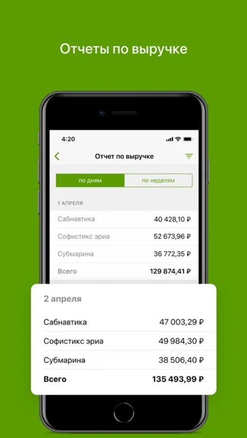 • отслеживайте динамику выручки в любом масштабе: от кассы до организации;