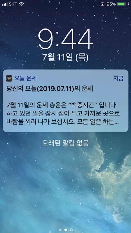 * "설정" 메뉴 > "운세 알림 받기" ON/OFF 기능을 활용하시면.
